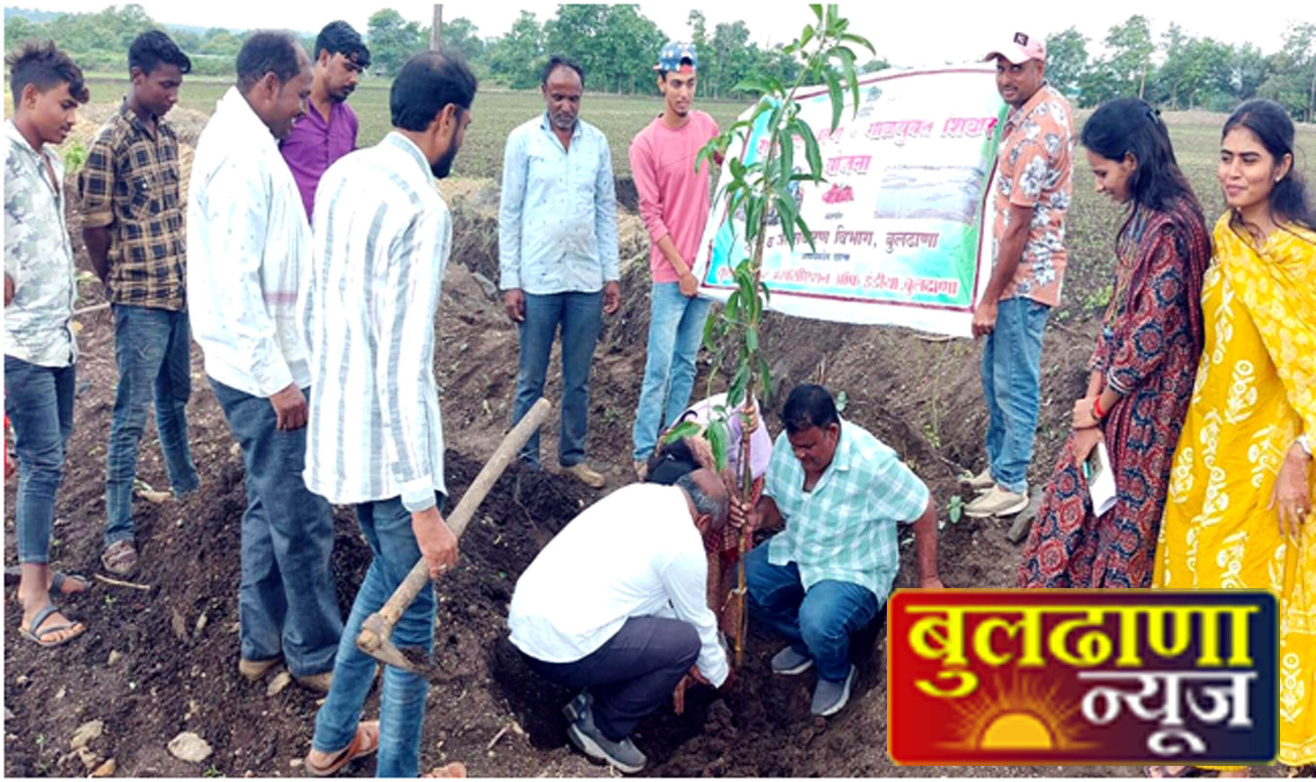 बुलढाणा जिल्हयातील मौजे रायपूर येथील संतोष राजपूत यांच्या शेतामध्ये मौजे पळसखेडभट येथील जलसाठयातील गाळ टाकण्यात आला आहे. त्यावर आंब्यांच्या रोपांची फळबाग लागवड करण्यात आली असून पर्यावरण संतूलन राखण्यासाठी व शेतकर्यांनी शासकीय योजने अंतर्गत फळबाग लागवड करुन अंतर पिके घेऊन उत्पन्नाचे स्त्रोत बळकट करावे असे प्रतिपादन, जिल्हा जलसंधारण अधिकारी प्राची गालफाडे यांनी केले.
